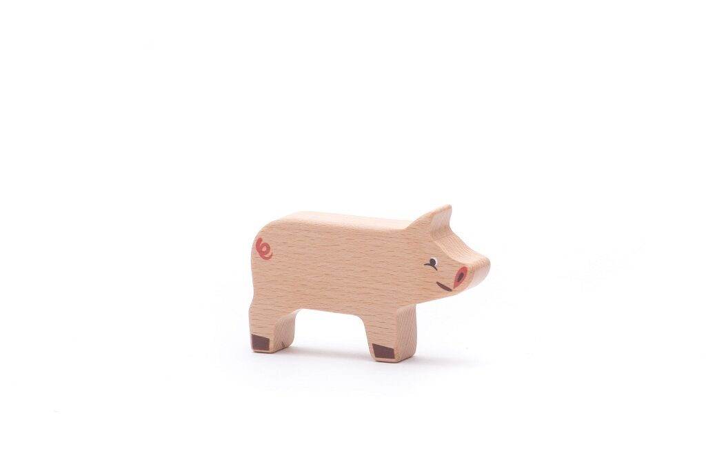 Dieses rosa Ferkel, das auf der Weide grast. Schweine sind, wie Enten, Gänse, Schweine, Hühner und Schafe, vom Menschen domestizierte Nutztiere. Die Schweinefigur kann einzeln oder im Bauernhof-Set erworben werden. Die Figur wurde so gestaltet, dass sie perfekt in die Hände eines kleinen Kindes passt.