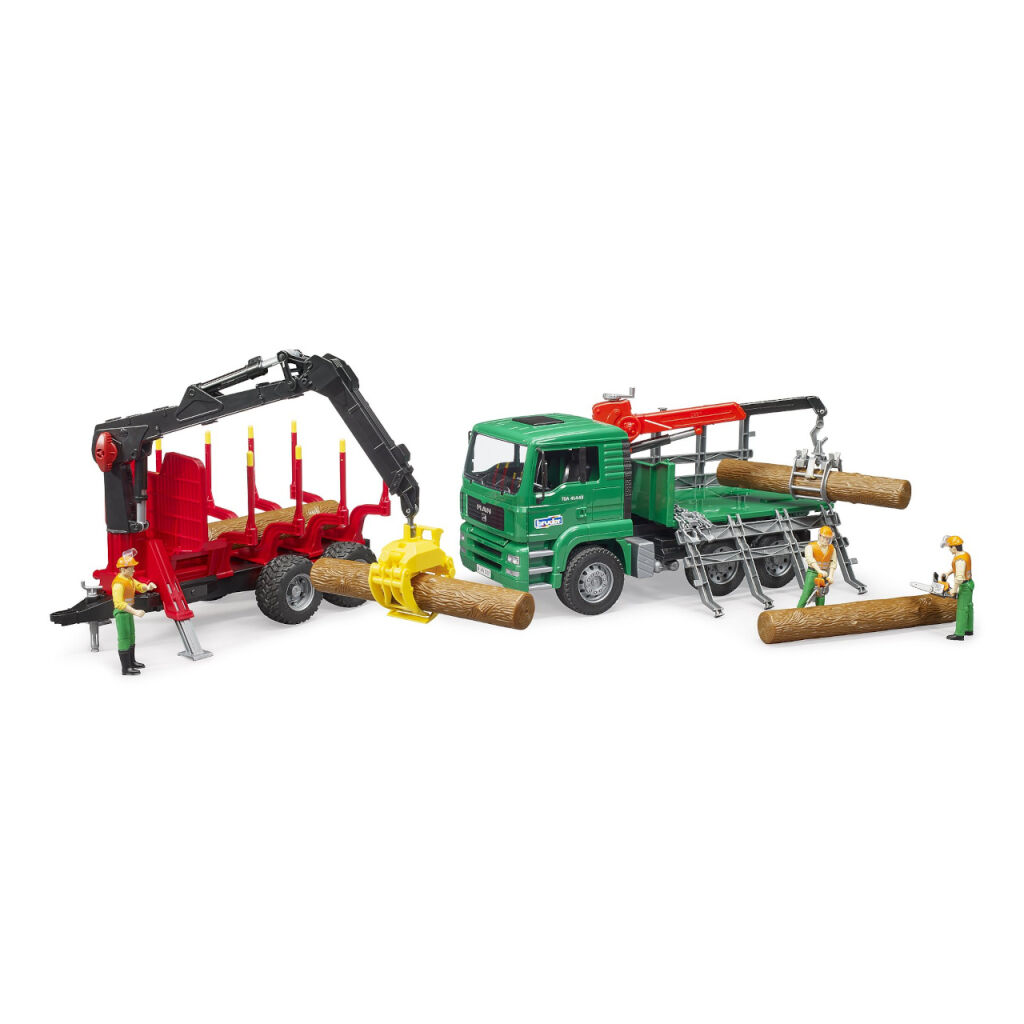 Der Bruder Holztransportanhänger mit Ladearm hat einen Lader mit Greifer für die Verladung von Bruder Holz installiert, das 360° schwenkbar, Schiebebügel, Pendelachsen zur Geländeanpassung, speziell für Arbeiten im Wald. Am Ende des Anhängers befindet sich eine zusätzliche Anhängerkupplung zum Anbringen eines weiteren Abstellgleises. Der Anhänger besteht aus 4 Stämmen und kann an alle BRUDER-Traktoren angehängt werden. Hergestellt in Deutschland, mit hochwertigen Materialien.