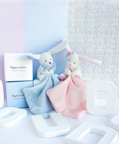 Ein Kaninchen in einer schönen Geschenkbox ist ein Muss! Das Kaninchen kann Babys von Geburt an begleiten. Es ist weiß mit einer blauen Fliege, extrem weich und wird sich freuen, ein großer Freund Ihres Babys zu werden. In seiner Pfote hält er eine kleine Decke, die als Schmusetuch dient, das das Baby leicht mit seinen kleinen Händen greifen kann. Ideal auch als Geschenk zur Geburt eines Babys.