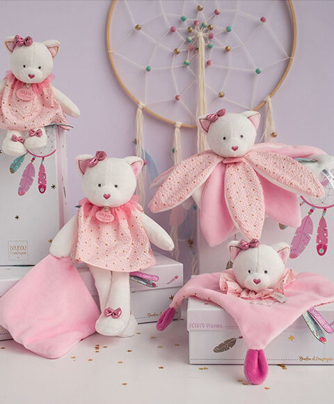 Doudou Geschenkset - Plüsch-Schlafunterlage rosa Katze 20 cm