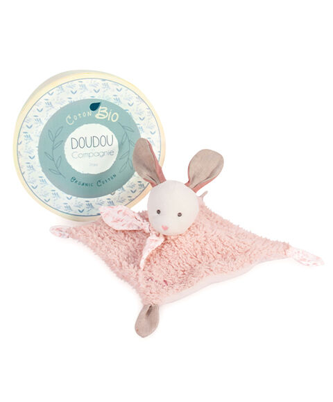 Doudou-Geschenkset - Plüschkaninchen mit rosa Decke aus Bio-Baumwolle 25 cm