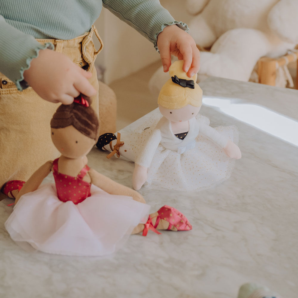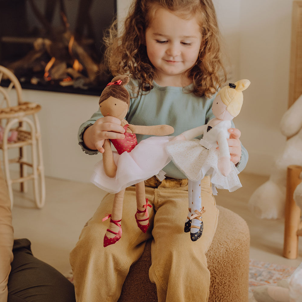 Stoffpuppen gibt es schon seit dem Römischen Reich, sie sind also eines der ältesten Spielzeuge. In der Vergangenheit wurden sie als Trost- und Lernspielzeug verwendet, aber Kinder lernten auch, mit ihnen zu nähen. Babys beginnen im Alter von etwa 18 Monaten mit Puppen zu spielen, daher sind Joulijou-Puppen leicht und einfach zu handhaben. Die Puppe begleitet die Kinder auch beim Erwachsenwerden und erfüllt in jedem Alter eine andere wichtige Rolle. In der Produktpalette von Jolijou finden Sie Produkte aus Bio-Baumwolle, aber auch Produkte aus 100% recycelten Fasern. Die Puppen sind für alle Kinder geeignet.