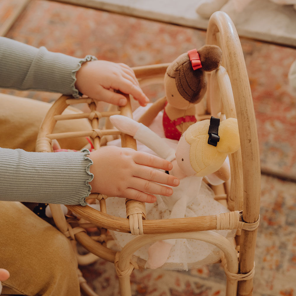 Stoffpuppen gibt es schon seit dem Römischen Reich, sie sind also eines der ältesten Spielzeuge. In der Vergangenheit wurden sie als Trost- und Lernspielzeug verwendet, aber Kinder lernten auch, mit ihnen zu nähen. Babys beginnen im Alter von etwa 18 Monaten mit Puppen zu spielen, daher sind Joulijou-Puppen leicht und einfach zu handhaben. Die Puppe begleitet die Kinder auch beim Erwachsenwerden und erfüllt in jedem Alter eine andere wichtige Rolle. In der Produktpalette von Jolijou finden Sie Produkte aus Bio-Baumwolle, aber auch Produkte aus 100% recycelten Fasern. Die Puppen sind für alle Kinder geeignet.