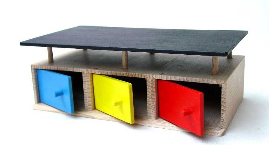 Garagen für Autos. Das ist etwas für die Jungs! Und immer nur 3 auf einmal ...Geeignet für Autos bis zu 10 x 5 cm.