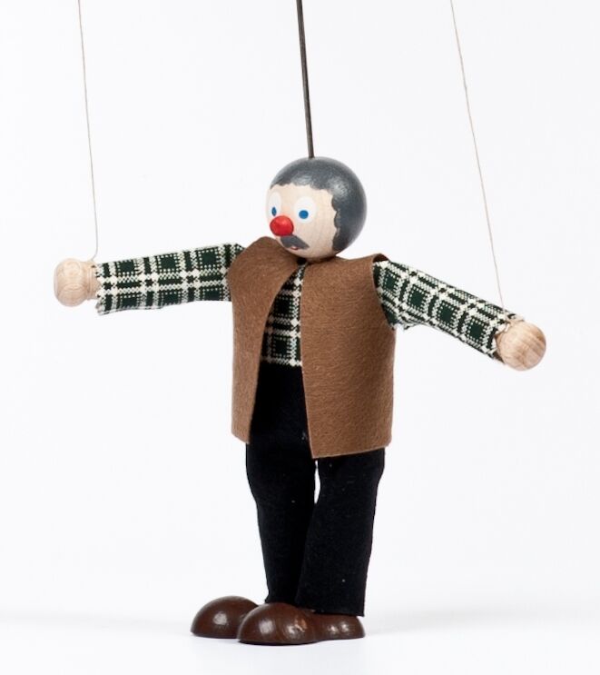 - dank der Führungsschnüre hat die Marionette bewegliche Arme