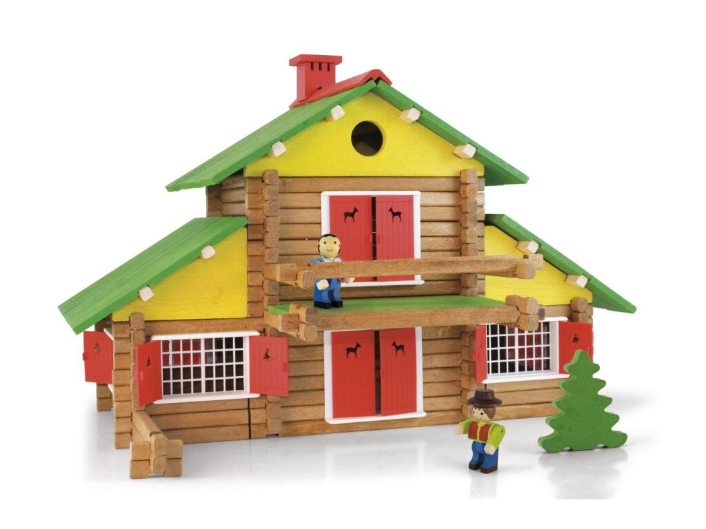 Der von Alpenhütten inspirierte Holzbausatz wird jeden kleinen Baumeister begeistern und zur Dekoration des Kinderzimmers werden. Die Bausätze von Jeujura Constructions haben eine lange Tradition und gehören zu den klassischen französischen Spielzeugen. Es bietet eine Reihe von Themen rund um Hütten, Häuser und Bauernhöfe, aber auch den Wilden Westen und das Mittelalter. Sie sind frei miteinander kombinierbar und für viele von ihnen werden auch Zubehör, Figuren und Fahrzeuge angeboten. Sie werden in Frankreich aus massivem Buchen- und Kiefernholz französischer Herkunft hergestellt. Die Teile der Bausätze werden ausschließlich mit Farben und Lacken auf Wasserbasis behandelt. Jedes Set ist in einer praktischen Pappschachtel verpackt, die mit pflanzlicher Tinte bedruckt ist und eine leicht verständliche Anleitung enthält.