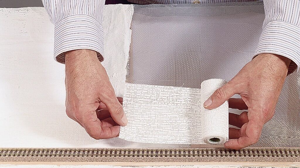 Mit den speziellen Gipsbinden können Sie Unterbauten aus Gelände-Alugewebe, Drahtpapier oder Gelände-Krepp überziehen. Besonders stabil wird die Konstruktion, wenn die Binden in mehreren Lagen auf den Unterbau aufgebracht werden.