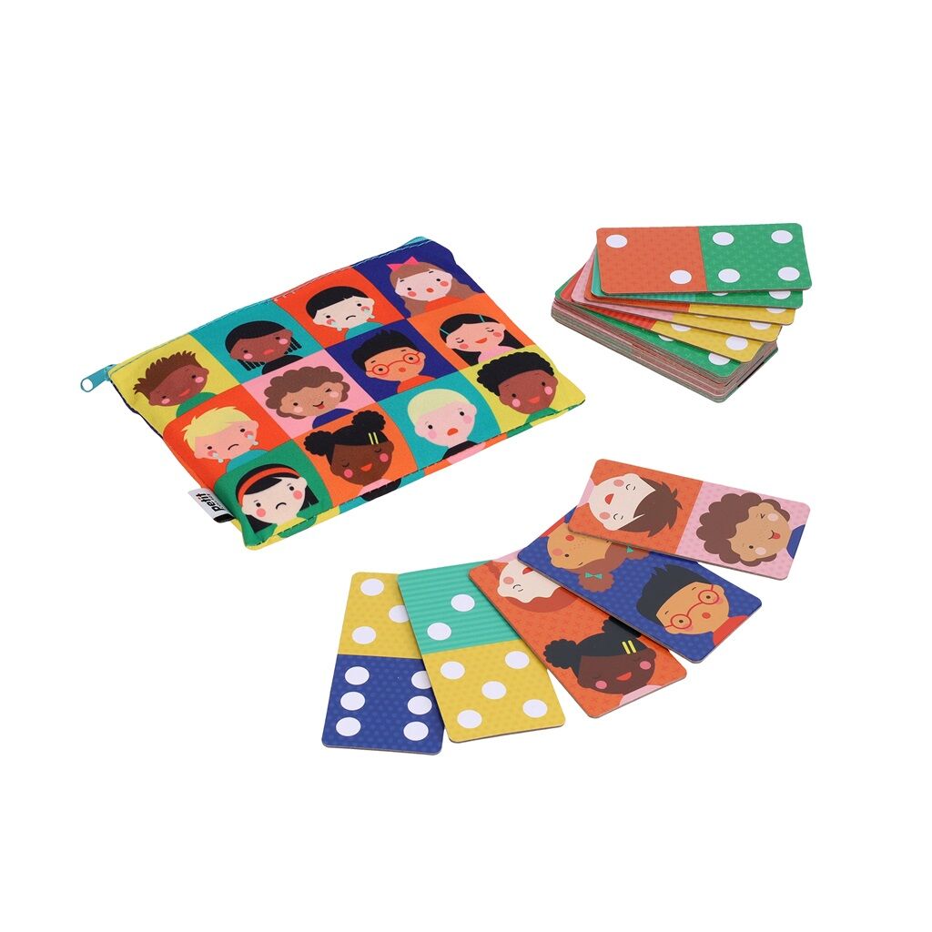 Spielen Sie klassisches Domino mit Zahlen oder drehen Sie die Karte um und spielen Sie mit Bildern von Gesichtern. Dominoes enthält 28 doppelseitige Karten, die zu 80 % aus recyceltem Papier bestehen. Dieses Spiel für Vorschulkinder ist lustig und lehrreich zugleich. Das klassische Spiel ist in einem praktischen Beutel mit Reißverschluss verpackt, so dass die Karten leicht darin aufbewahrt werden können und Domino ein praktischer Begleiter für zu Hause und unterwegs wird.