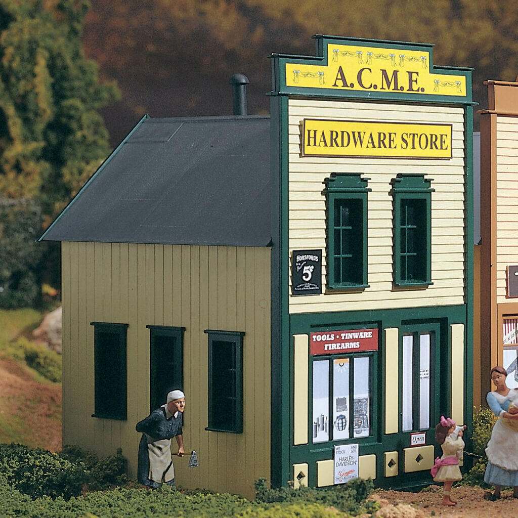 Ein Musterbeispiel für ein westliches Kleinstadtunternehmen, das sich durch eine markante Fassade auszeichnet. Die Gebäude der Pleasant Collection zeichnen sich durch ihre Vielfalt an Motiven und Farben aus, die es Ihnen ermöglichen, eine attraktive Stadt mit Wildwest-Atmosphäre spielerisch nachzubilden. Das Modell ist robust und zerlegbar, die Hauptteile sind mechanisch durch Stifte verbunden. Dadurch ist er platzsparend und kann leicht transportiert werden. Andere auf dem Bild gezeigte Gegenstände (Maschinen, Figuren usw.) sind nicht enthalten. Mit den PIKO Kunststoffmodellen im Maßstab G lassen sich nicht nur realistische Gartenbahnen bauen, sondern sie erleichtern es auch, Kinder anzusprechen und ihre Phantasie für eine Vielzahl von Spielen anzuregen, indem sie eine Reihe von Motiven und Zugänglichkeiten bieten. Sie sind aus hochwertigem, wetterfestem und lichtechtem Kunststoff gefertigt. Die detailgetreuen Formteile der Bausätze bieten eine ausgefeilte Farbbehandlung einschließlich Patina, wobei der Schwerpunkt auf der Originaltreue liegt. Gebäude lassen sich nicht nur mit aufgeklebten Abziehbildern und Decals, sondern auch mit einer besonders großen Auswahl an Zusatzteilen individuell gestalten. Die präzise Verarbeitung und die ausführliche Anleitung garantieren eine einfache Montage und sparen Ihnen Zeit, die Sie für die originelle Gestaltung und Anordnung der Gleise verwenden können. Um die Festigkeit der Klebeverbindungen unter Außenbedingungen zu gewährleisten, sollten Sie den empfohlenen Kleber verwenden. Hergestellt in Deutschland unter Einhaltung strengster Qualitätsstandards.