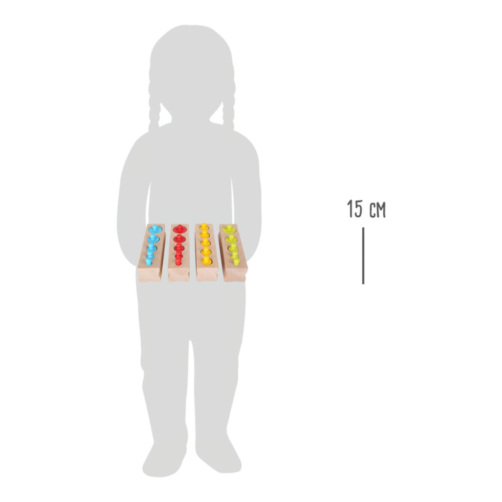 Dieses farbenfrohe Logikspiel regt Kinder zum Vergleichen, Ordnen, Zählen, Messen und Strukturieren an. Dieses Massivholzspielzeug zeichnet sich durch seine Einfachheit und Klarheit aus. Es trainiert die Feinmotorik und hilft Kindern, ihre Wahrnehmung, Intelligenz und Persönlichkeit zu entwickeln. "Hilf mir, es selbst zu tun!" ist genau das, was die Montessori-Pädagogik empfiehlt!