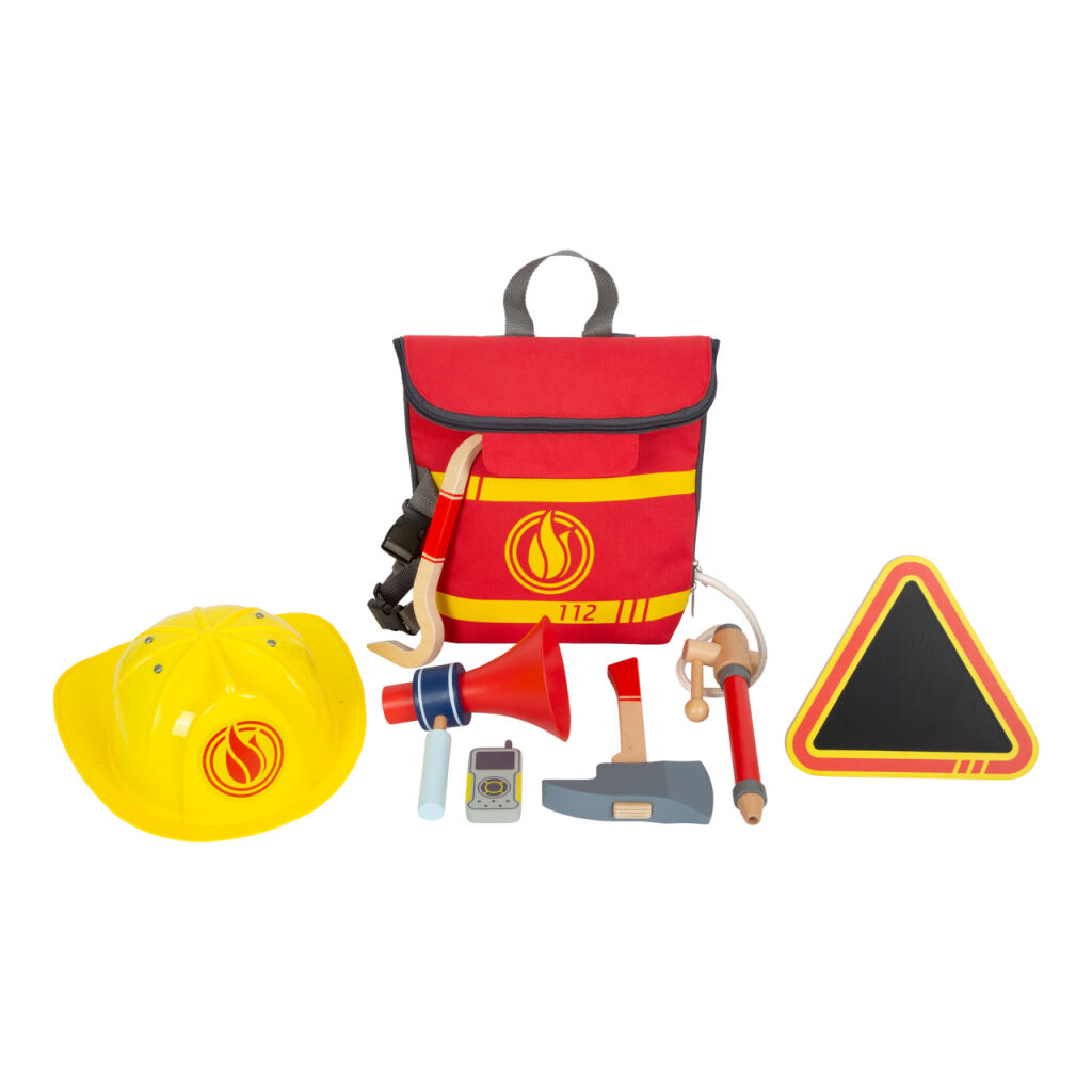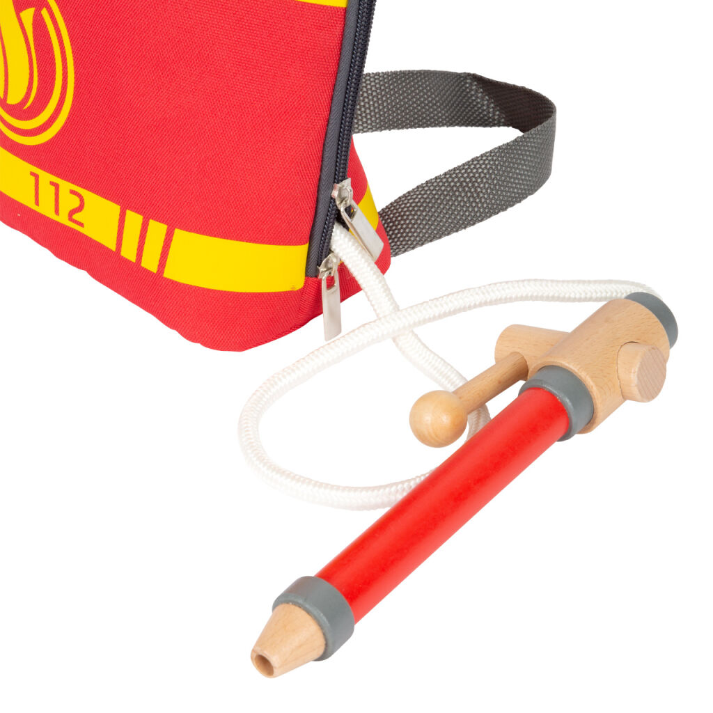 Mit diesem realistischen Feuerwehr-Rucksack in Notfallfarben mit verstellbaren Schultergurten sind junge Feuerwehrleute immer zur Stelle, wenn sie gebraucht werden. Der Doppelreißverschluss sorgt für eine weite Öffnung des Rucksacks. Der Rucksack bietet viel Stauraum und schnellen Zugriff auf die Ausrüstung aus robustem Holz. Zwei zusätzliche Schnappverschlüsse am Rucksack ermöglichen die Befestigung von weiterem Zubehör. Der obere Teil ist eine Sprinkleranlage! Der handliche Feuerwehrrucksack mit einer kompletten Feuerwehrausrüstung und allen wichtigen Werkzeugen ermöglicht Kindern ein spannendes Feuerwehrspiel.