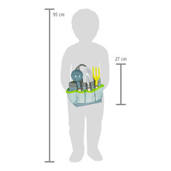 Diese praktische Gartentasche ist ein handlicher Gartenhelfer und eignet sich ideal für den einfachen Transport aller Gartengeräte. Sechs unterschiedlich geformte Werkzeuge aus robustem Metall in modischen Farben mit Naturholzgriffen verlocken zu Gartenaktivitäten! Kehrschaufel, Kohleschaufel, Handspaten und -schaufel sowie die kleine Harke und Gabel lassen sich leicht in der Tasche verstauen und sind so immer griffbereit. Dieses Garten-Set lässt sich perfekt mit einer Sprühflasche kombinieren, die gleichzeitig als Gießkanne dient. Speziell für die Größe und die Bedürfnisse von kleinen Gartenanfängern entwickelt, aber auch perfekt für den Strand und den Sandkasten! Die Gartentasche für Kinder bietet dank der zahlreichen Seitentaschen mit Gummibändern zur Werkzeugbefestigung viel Platz für alle Werkzeuge - da macht das Graben, Pflanzen und Ernten richtig Spaß!
