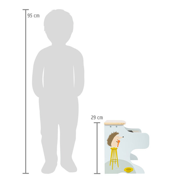 Wer wird das Klavier spielen? Dieses robuste elektrische Holzklavier macht dank seines einzigartigen Designs einen hervorragenden Eindruck. Die Kombination aus viel Naturholz, modernen Blautönen und Kindermotiven macht dieses Klavier auch im Kinderzimmer zu einem absoluten Blickfang! Die beiliegenden Aufkleber, die auf die Tasten geklebt werden können, unterstützen junge Musiker bei ihren ersten Kompositionen. Wird komplett mit Noten geliefert. Ein absoluter Hit für junge Pianisten! Dieses Kinderklavier fördert das Notenverständnis, schult das musikalische Bewusstsein und entwickelt ein Gefühl für Rhythmus und Takt. Ideal für die musikalische Früherziehung! Batterien nicht enthalten.