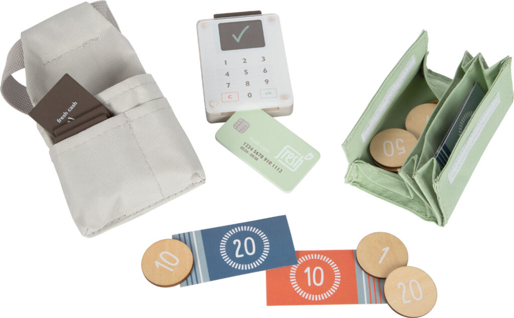 Pizza backen und verkaufen wie ein echter Profi! Der robuste Pizzaofen aus Holz dient nicht nur als Pizzaofen, sondern auch als Vorratskammer und Verkaufstheke in einem. Er verfügt über praktische Fächer für Pizzazutaten. Das Spielset bietet alles, was kleine Köche und Gastronomen für eine typische Pizzeria benötigen – vom Pizzaschneider bis hin zur Speisekarte mit Preisen und Preislisten für die eigene kleine Pizzeria. Die verschiedenen Pizzazutaten aus Filz wie Zwiebeln, Champignons, Paprika, Tomaten, Wurst, Käse und Tomatensoße ermöglichen viele fantasievolle Pizzakreationen. Die Pizzastücke aus Massivholz sind mit Klettverschluss verbunden und lassen sich mit dem Schneidrad einfach trennen. Das Highlight des authentischen Spielerlebnisses ist die Gürteltasche, die Platz für die Kellnerbörse inklusive Spielgeld und einem modernen Kartenleser bietet. Ein Pizzakarton ist ebenfalls enthalten. Der Pizzaofen verfügt über ein Klickgeräusch für noch mehr Spielspaß. Dieses Set zeichnet sich durch kindgerechtes Design, hohen Spiel- und Lernwert aus und ist eine sinnvolle Ergänzung für jede Kinderküche. Aktives Rollenspiel fördert die Motorik, die Sozialkompetenz und übt spielerisch Alltagskompetenzen.
