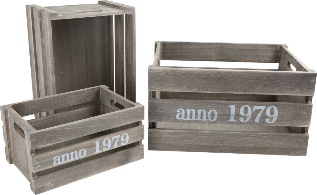 Diese Holzkisten sind in drei verschiedenen Größen erhältlich. Sie haben eine glatte Oberfläche und eine Beschriftung auf der Außenseite. Das leicht geschliffene Holz verleiht den Kisten ein attraktives "patiniertes Aussehen". Die kürzere Seite ist immer zum Greifen ausgeschnitten. Sie dienen als Dekoration, zur Aufbewahrung von Lebensmitteln, aber auch zum Transport. Sie sind ein ideales Hilfsmittel für die Aufbewahrung von Obst und Gemüse im Kinderladen.