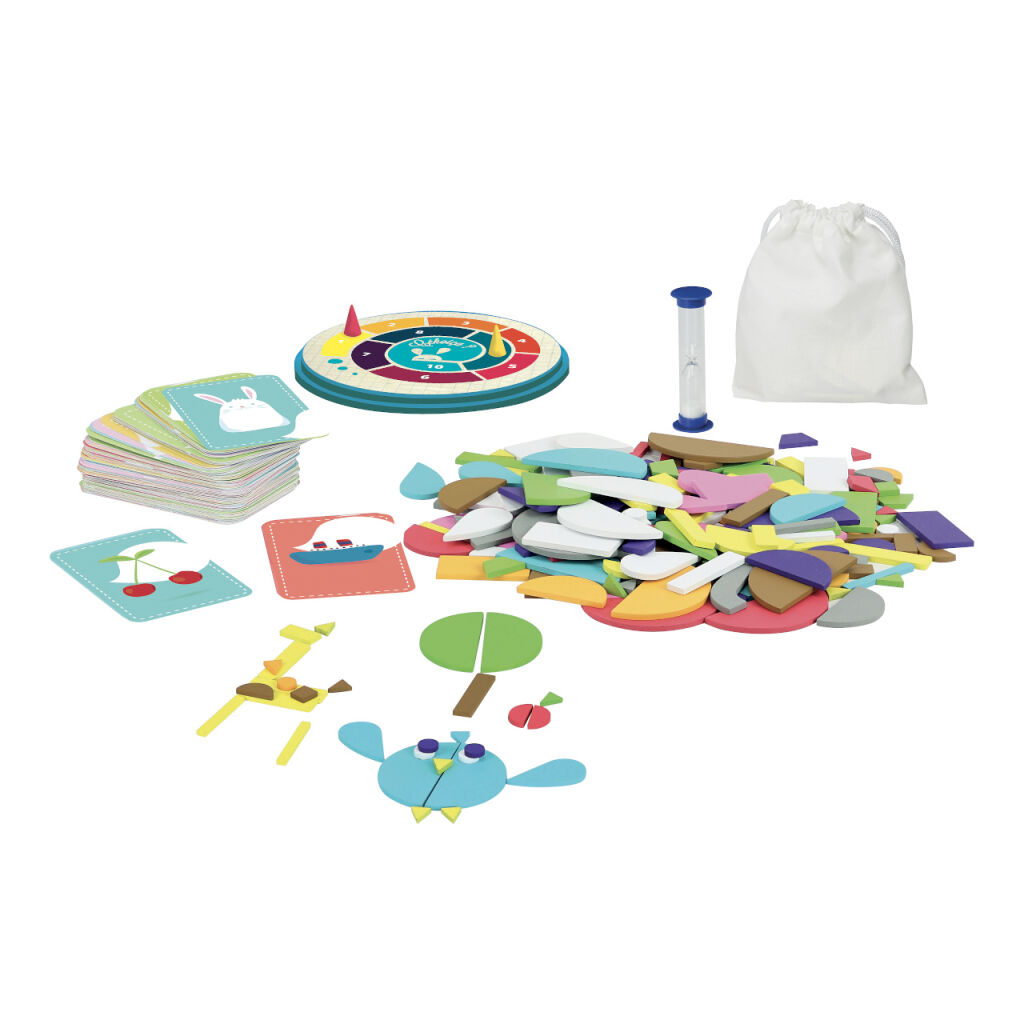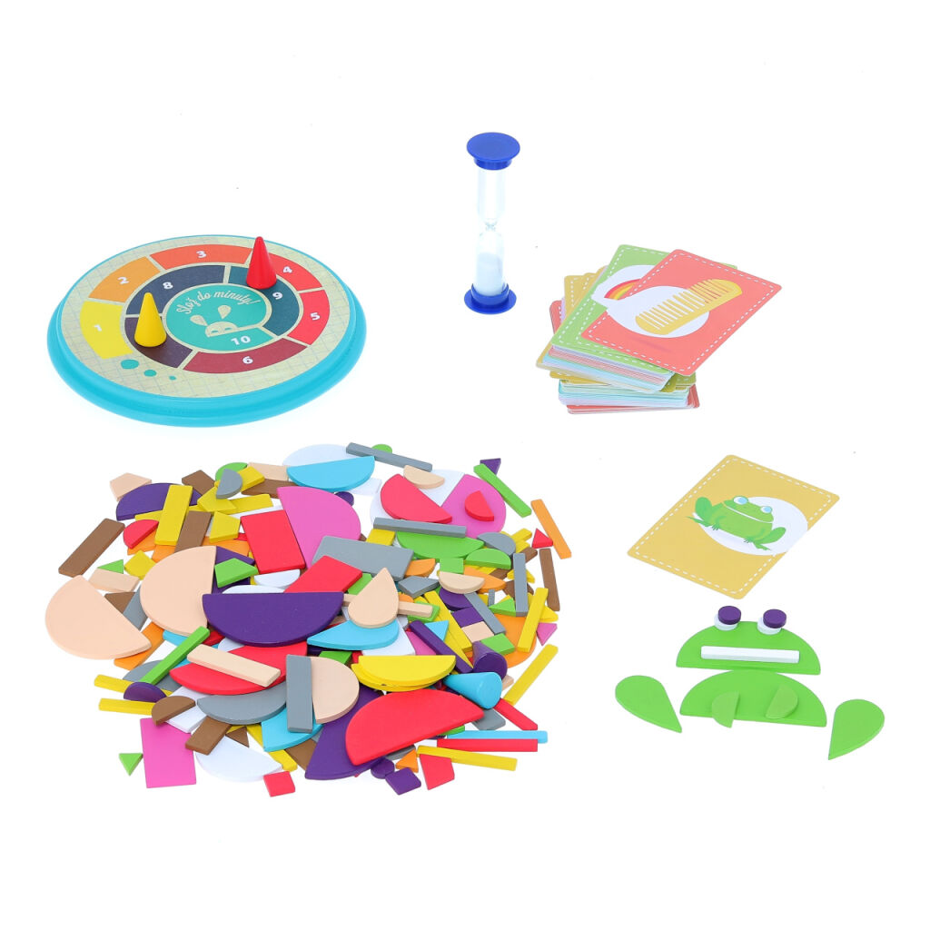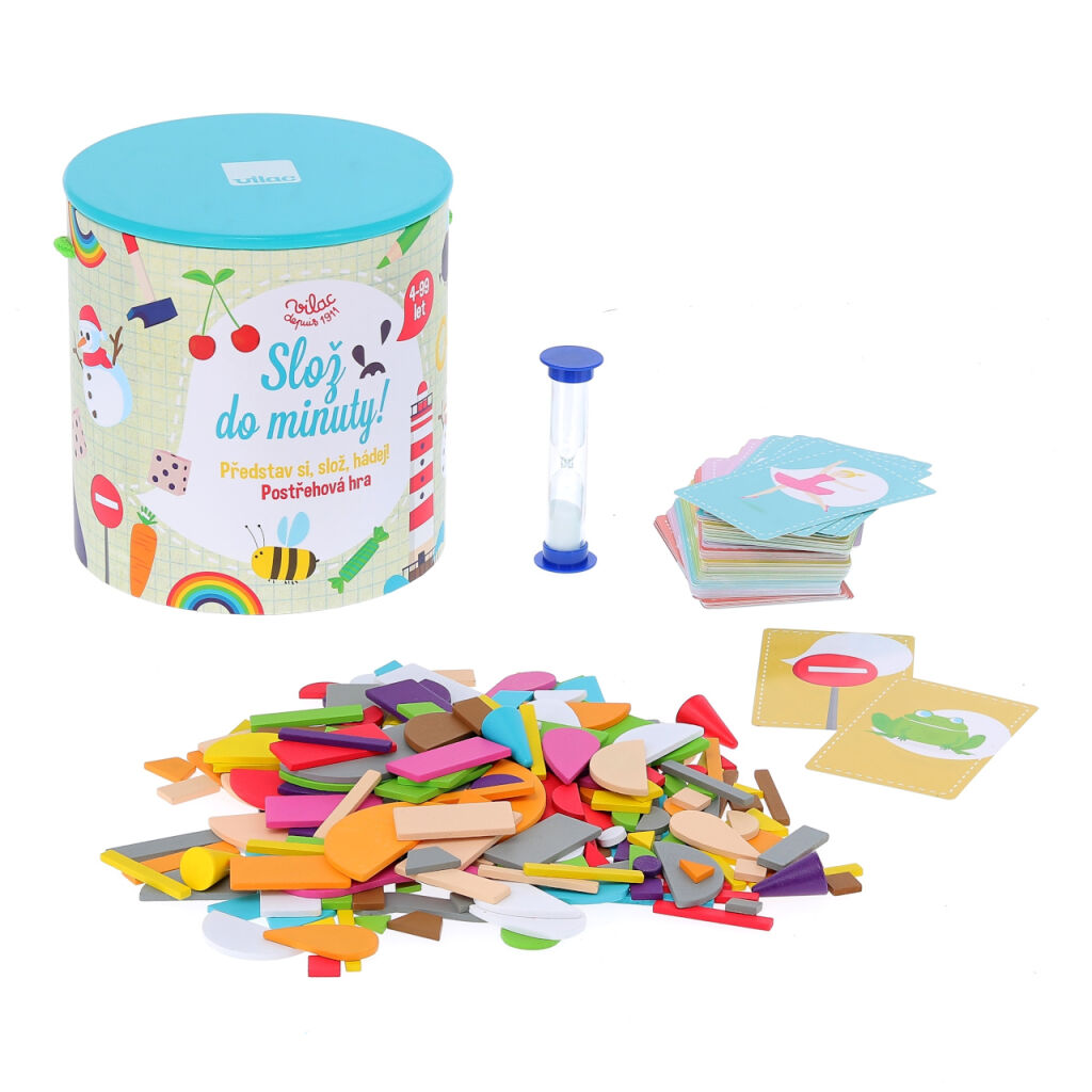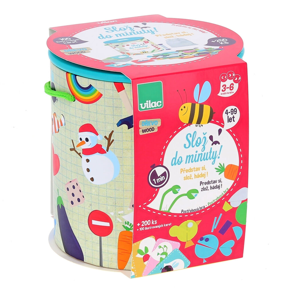 Ein lustiges Spiel, das die Fantasie und das Verständnis der Kinder fördert. Nehmen Sie eine Karte und bauen Sie innerhalb einer Minute ein Bild aus den verfügbaren Formen. Ein Spiel für alle von 4 bis 99 Jahren. Je nach Alter der Spieler können Sie die Zeit für die Lösung erhöhen oder ohne Zeitlimit spielen. Das Spiel wird zusammen mit einer tschechischen und slowakischen Anleitung in einem praktischen, in tschechischer Sprache bedruckten Kartoneimer geliefert.