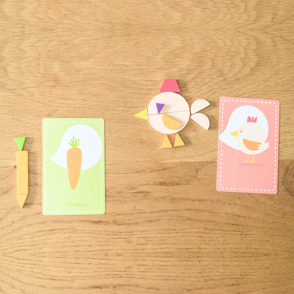 Alle Spieler setzen ihre Figur an den Anfang der Wertungstabelle. Ein Spieler nimmt eine Bildkarte, ohne sie den anderen Spielern zu zeigen. Ohne etwas zu sagen, hat dieser Spieler eine Minute Zeit, um eine Bildkarte aus so vielen Holzteilen wie möglich zusammenzusetzen, damit die anderen Spieler erraten können, welches Bild sich auf seiner Karte befindet. Der Spieler, der zuerst rät, erhält einen Punkt und rückt seine Figur auf der Wertungstabelle vor. Der Spieler, der das Bild erraten hat, erhält ebenfalls einen Punkt und rückt seine Figur auf der Wertungstabelle vor. Die benutzte Karte wird beiseite gelegt. Wenn der Spieler, der das Bild gefaltet hat, den anderen Spielern hilft, in der vorgegebenen Zeit zu erraten, was auf der Karte steht, oder sich zu Wort meldet, erhält er keine Punkte und die Karte kommt zurück auf den Boden des Stapels. Dann ist der nächste Spieler an der Reihe. Der erste Spieler, der eine Figur auf das Kaninchenfeld legt, gewinnt.
