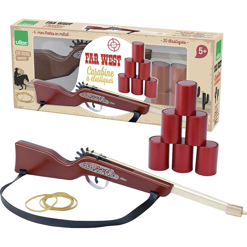 - Enthält ein Holzgewehr, 20 Gummibänder und 6 Mini-Dosen