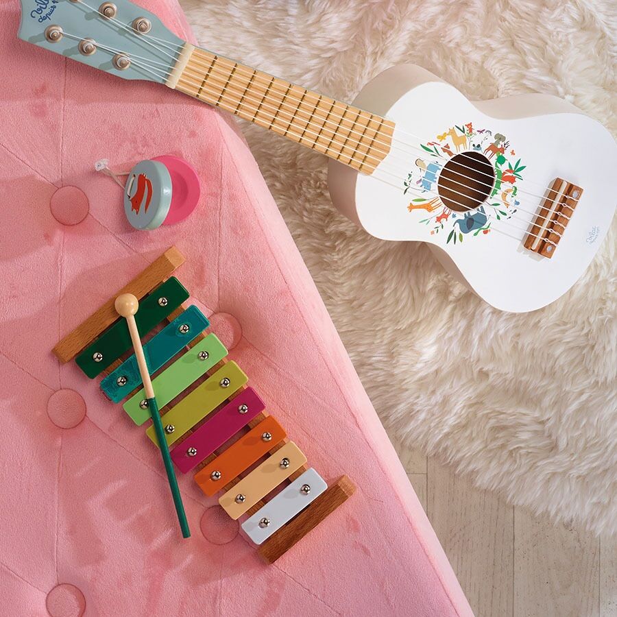 Entdecken Sie das zauberhafte Musikset aus Holz mit Illustrationen von Sarah Betz, das Kindern ab 3 Jahren eine Welt voller Rhythmus und Klänge eröffnet. Das Set enthält ein Tamburin, ein Xylophon mit Schlägel, Doppel-Rumba-Kugeln und Kastagnetten – ideal für die Entwicklung von Feinmotorik, Kreativität und musikalischer Wahrnehmung. Der perfekte Einstieg in die Welt der Musik, des Spaßes und der Fantasie! Die Instrumente erzeugen angenehme Klänge und vermitteln eine Beziehung zur Musik,es handelt sich jedoch nicht um professionelle Musikinstrumente. Das Spielzeug ist nicht perfekt gestimmt, sondern dient hauptsächlich dem Spaß.