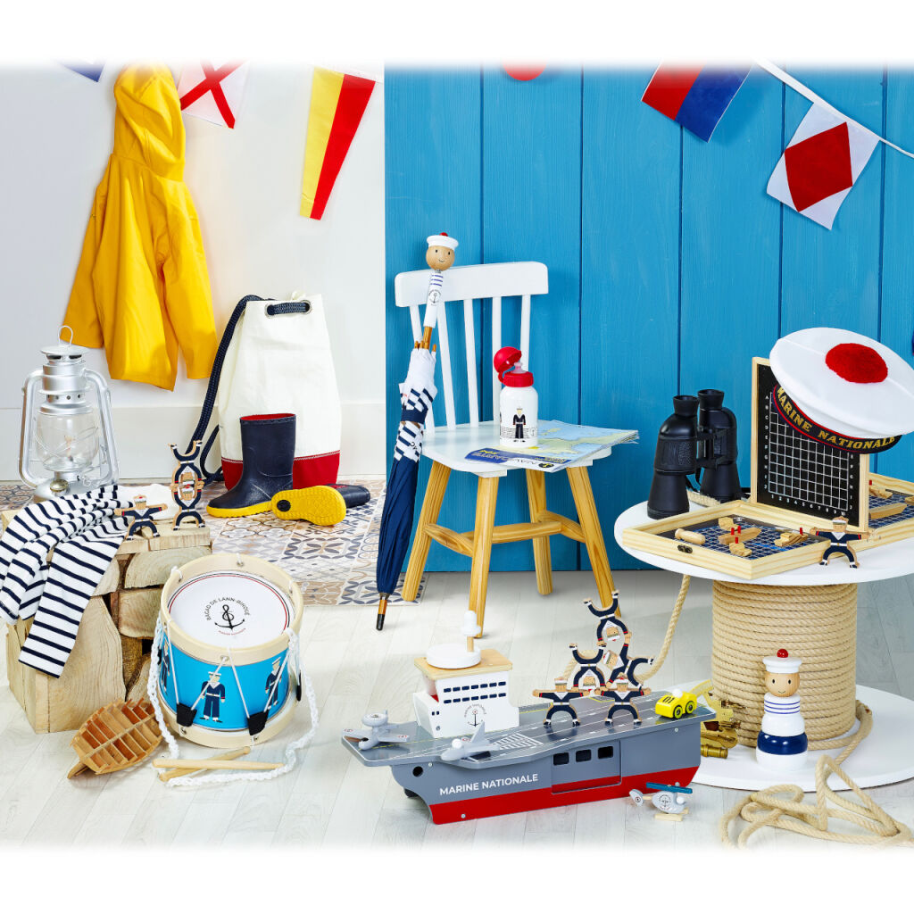 Frohes Segeln! Dies ist ein Wunsch an die Seeleute, die zur See fahren. Dies ist auch der Wunsch von Vilac, deren Kollektion in Zusammenarbeit mit der französischen Marine entwickelt wurde. Der Geruch des Meeres wurde vom Wind bis ins Jura-Gebirge geweht. Das Ergebnis wird kleine Segler und Matrosen begeistern, aber auch Erwachsene, die ihr inneres Kind pflegen!