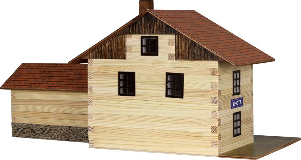 In den HOBBY KITS-Bausätzen finden Sie alles, was Sie für den Zusammenbau benötigen. Einfache bebilderte Anleitungen mit Symbolen für die einzelnen Schritte sind vorhanden, so dass sie von Kindern auf der ganzen Welt zusammengebaut werden können. Das Basismaterial sind präzise gefertigte Kiefernhölzer mit den Maßen 9×9 mm in Längen von 16 bis 230 mm für den Bau von Holzwänden. Dächer, Giebel, Pavillons und Terrassen sind aus 3 mm starkem Sperrholz gefertigt und mit Papierdrucken versehen. Mit Folie verglaste Funktionstüren und Fenster werden aus bedrucktem Karton hergestellt. Die einzelnen Gebäude werden mit Holz- und Papierkleber (nicht im Lieferumfang enthalten) zusammengeklebt. Die Anleitungen enthalten kleine Kapitel über das Bauwesen und die Geschichte der volkstümlichen Architektur. Das Modell des Bahnhofs ist im Maßstab 1:45 gehalten.
